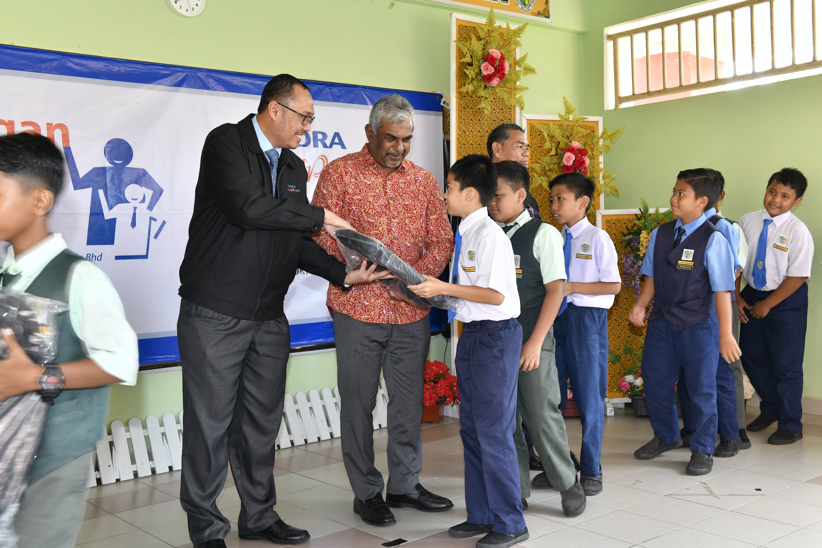 2019年11月,埃德拉公司對馬來西亞各電廠周邊莘莘學子開展教育援助計劃,圖為領取捐贈物資的小學生合影