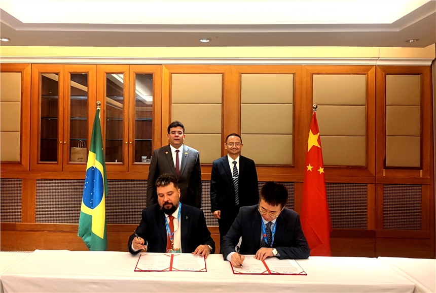 會議最后,在拉斐爾與張超群的見證下,皮奧伊州政府投資發(fā)展部亞洲區(qū)主任薩羅·卡斯特羅·布蘭科(Saullo Castelo Branco)與中廣核巴西公司董事長兼總裁姚志剛代表雙方簽署了合作備忘錄。